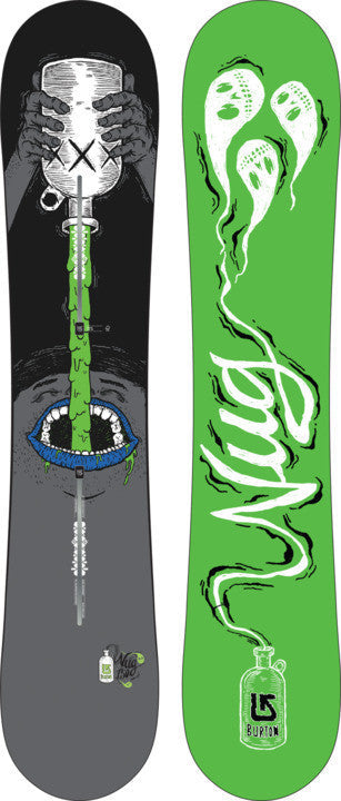 - KEY FEATURE: A top ten Backyard board graphic contest finisher from last season, Pierre Llamas applies a dark vision to his twisted pen and ink illustrations. His ghostly apparitions of bootlegged booze worked like black magic for the Nug’s off-kilter personality.